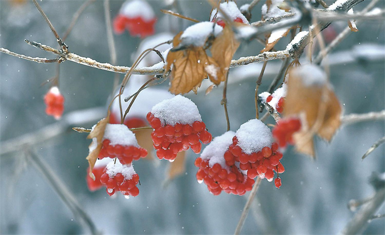 摄影爱好者们也纷纷出动,他们扛着相机,寻找着最美的角度。红果子在白雪中格外醒目,宛如一颗颗璀璨的红宝石,散发着诱人的光芒。红叶尚未凋零,与白雪相拥,似火的热情与纯净的洁白相互交织,构成了一幅绝美的画面。