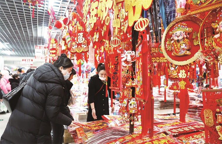 延吉市市民选购春联、福字。 延吉市委宣传部 供图