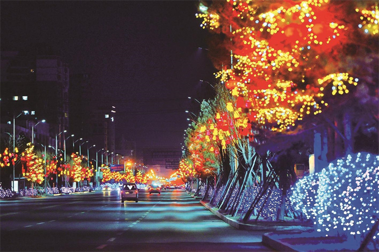 夜幕降临,华灯初上。延吉市主干道上,雪花、柿子、星星、红包等各式花灯摇曳生姿、流光溢彩,令人目不暇接。 延吉市委宣传部 供图