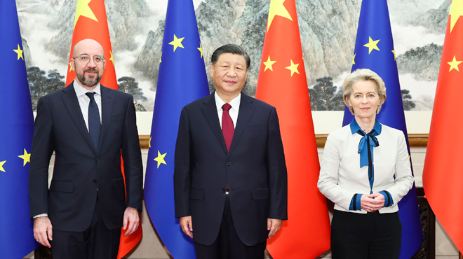 习近平会见欧洲理事会主席米歇尔和欧盟委员会主席冯德莱恩