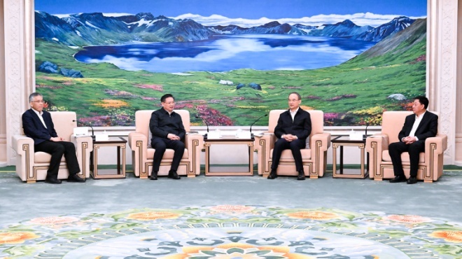1月17日,省委书记、省人大常委会主任黄强,省委副书记、省长胡玉亭在长春会见中国宝武钢铁集团有限公司党委书记、董事长胡望明和总经理侯安贵一行。张野 摄