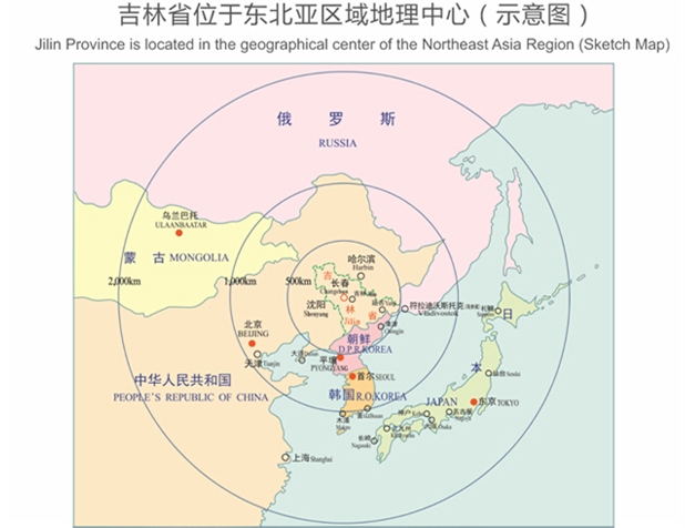 吉林省地处边境近海,边境线总长1452公里,其中,中朝边境线1206公里,中俄边境线246公里。最东端的珲春市距日本海仅15公里,距俄罗斯的波谢特湾仅4公里。