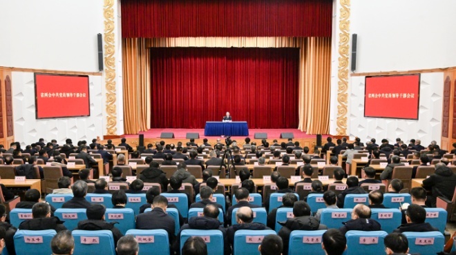 1月25日,省委书记黄强主持召开省两会中共党员领导干部会议。省委副书记、省长胡玉亭,省政协主席朱国贤出席会议。张野 摄
