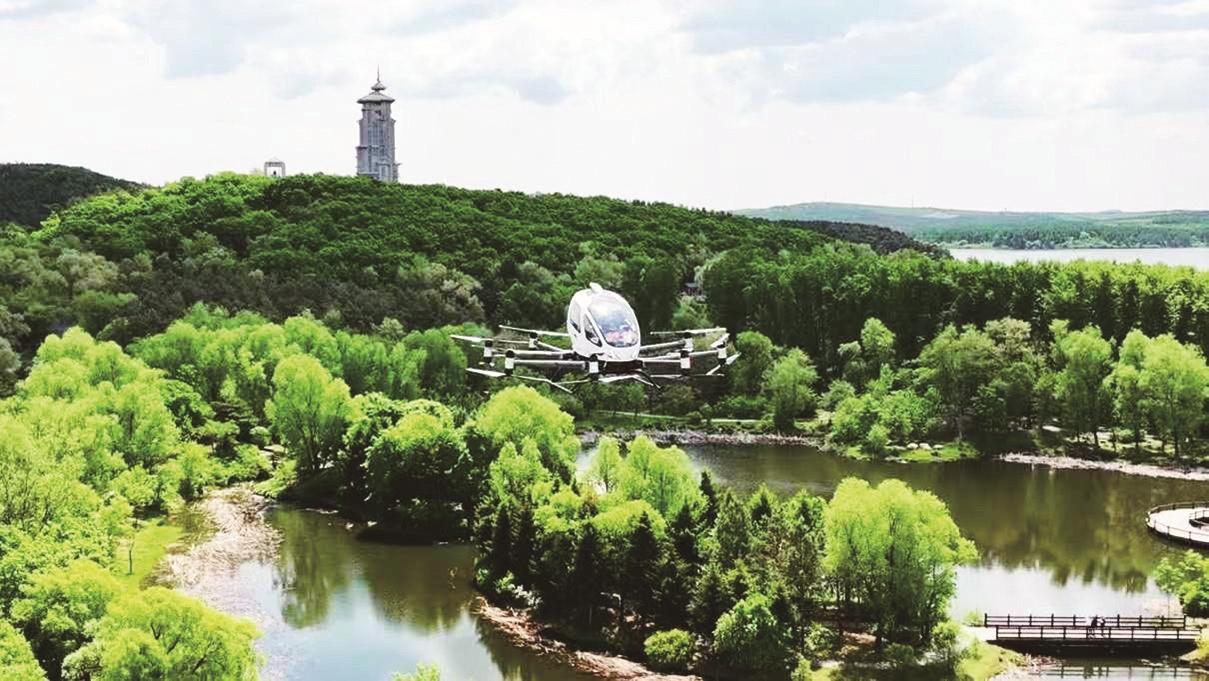 亿航EH216-S无人驾驶载人航空器在净月潭试飞。