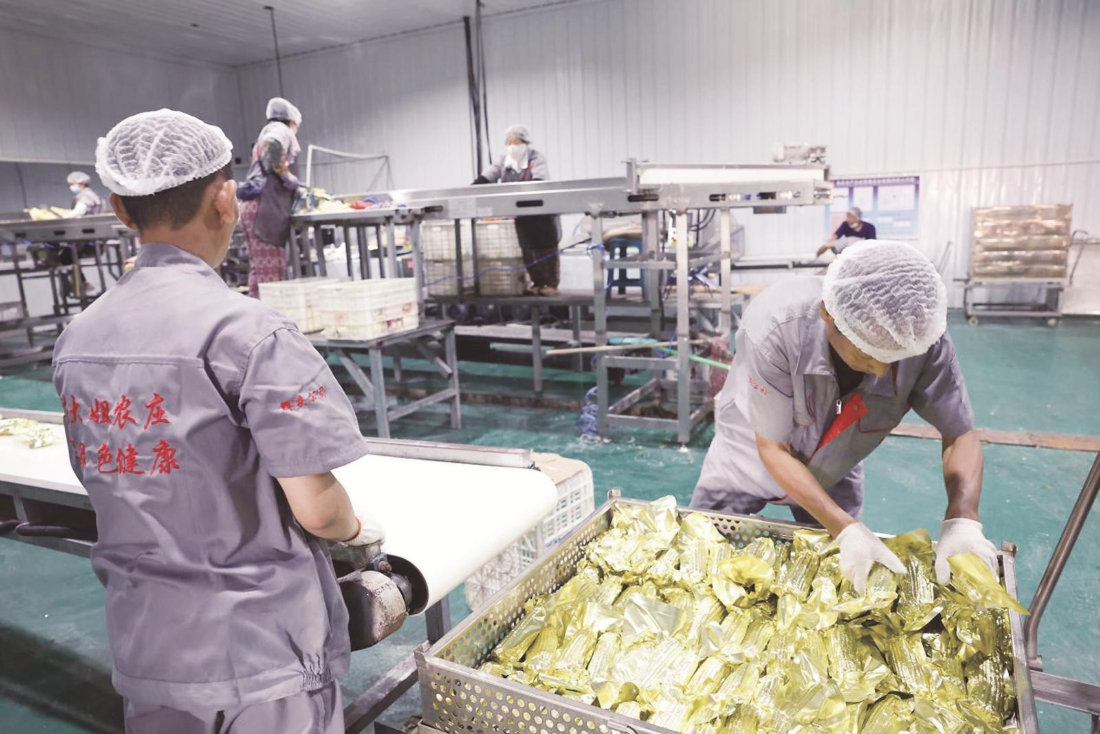吉林省辉庆农业开发有限公司的工人们正在加工鲜食玉米。