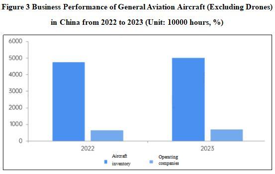 As of the end of 2023, the number of general aviation aircraft (excluding drones) in China is about 5000, an increase of 5% compared to 2022. There are 690 traditional general aviation operators (excluding drones), an increase of 4% compared to 2022.