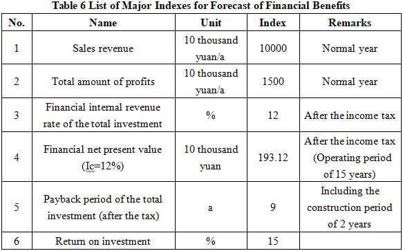 After the project reaches the production capacity, its annual sales revenue will be 100 million yuan, its profit will be 15 million yuan, its investment payback period will be 9 years (after the tax, including the construction period of 2 years) and its investment profit rate will be 15%.