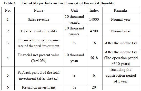 After the project reaches the production capacity, its annual sales income will be 140 million yuan, its profit will be 42 million yuan, its investment payback period will be 6 years (after the tax, including the construction period of 1 year) and its investment profit rate will be 20%.