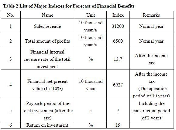 After the project reaches the production capacity, its annual sales income will be 312 million yuan, its profit will be 65 million yuan, its investment payback period will be 7 years (after the tax, including the construction period of 2 years) and its investment profit rate will be 19%.
