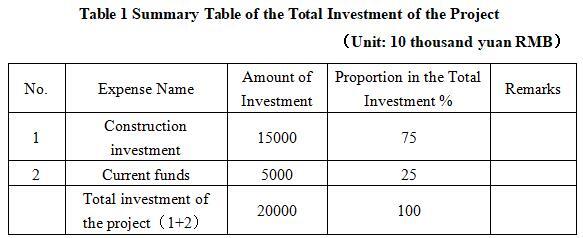 The total investment of the project is 200 million yuan, including the construction investment of 150 million yuan.