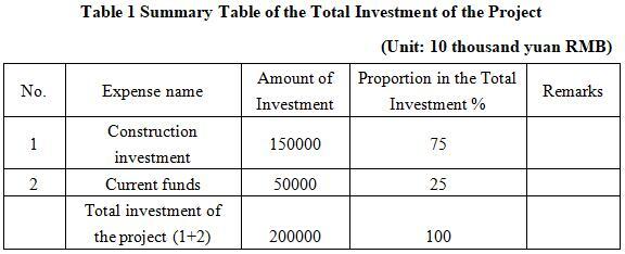 The planned area is 50,000 square meters. The construction area is 45,500 square meters, including 17,000 square meters of construction area for production, 18,500 square meters of construction area for auxiliary production facilities, 1,250 square meters of construction area for utility works, and 8,750 square meters of construction area for office and living facilities.
