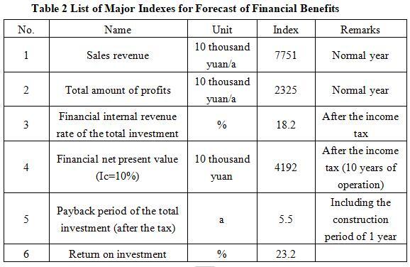 After the project reaches the production capacity, its annual sales revenue will be 77.51 million yuan, its profit will be 23.25 million yuan, its investment payback period will be 5.5 years (after the tax, including the construction period of 1 year) and its return on investment will be 23.2%.