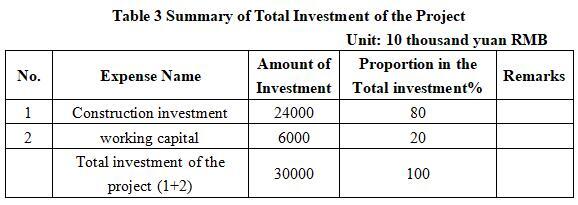 The total investment of this project is 300 million yuan, including 240 million yuan for construction investment and 60 million yuan for working capital.