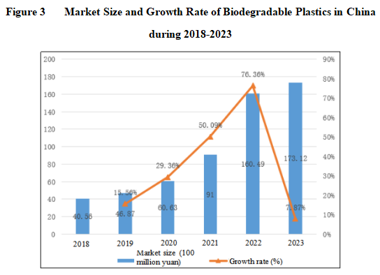 With the increasing awareness of environmental protection among consumers, the demand for biodegradable materials in packaging, catering, agriculture, and daily consumer goods is gradually increasing. The food delivery and logistics packaging industries have begun to introduce biodegradable packaging to reduce the burden of plastic waste on the environment. The market size of biodegradable plastics in China was 4.056 billion yuan in 2018, and increased to 9.1 billion yuan in 2021. By 2022, it had increased to 16.049 billion yuan. In 2023, the market size of biodegradable materials in China reached 17.312 billion yuan, a year-on-year increase of 7.87%.