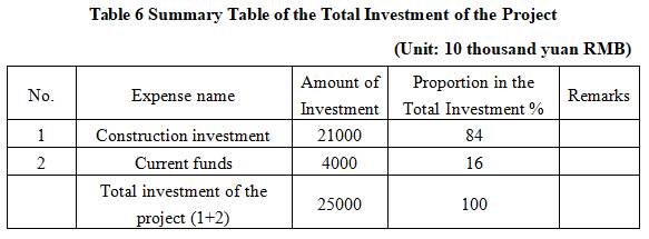 The total investment of the project is 250 million yuan, including the construction investment of 210 million yuan and current funds of 40 million yuan.