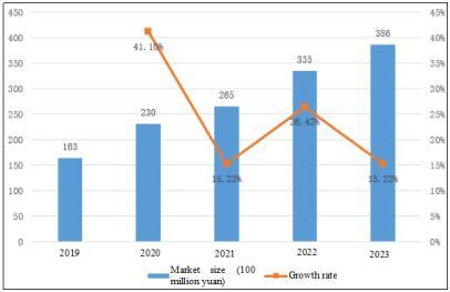 Figure 1 Scale and Growth Rate of China’s Graphene Market during 2019- 2023