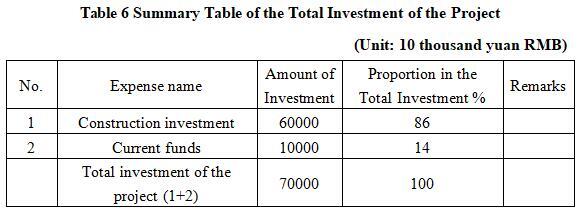 The total investment of the project is 700 million yuan, including the construction investment of 600 million yuan and current funds of 100 million yuan.