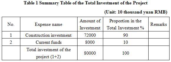 The total investment of the project is 800 million yuan, including the construction investment of 720 million yuan and current funds of 80 million yuan.