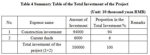 The total investment of the project is 1,000 million yuan, including the construction investment of 940 million yuan and current funds of 60 million yuan.