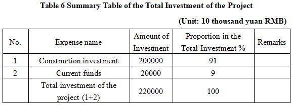 The total investment of the project is 2,200 million yuan, including the construction investment of 2,000 million yuan and current funds of 200 million yuan.