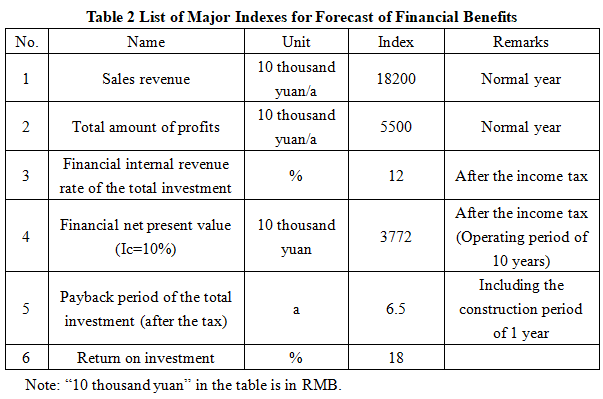 After the project reaches the production capacity, its annual sales revenue will be 182 million yuan, its profit will be 55 million yuan, its investment payback period will be 6.5 years (after the tax, including the construction period of 1 year) and its return on investment will be 18%.
