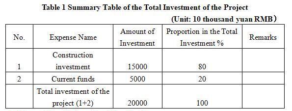 The total investment of the project is 200 million yuan, including the construction investment of 150 million yuan.