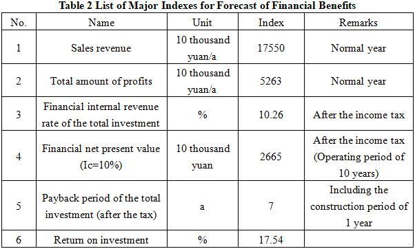 After the project reaches the production capacity, its annual sales revenue will be 175.5 million yuan, its profit will be 52.63 million yuan, its investment payback period will be 7 years (after the tax, including the construction period of 1 year) and its return on investment will be 17.54%.