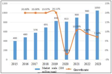 Figure 3 Scale and Growth Rate of China’s Health and Wellness Tourism Market from 2015 to 2023