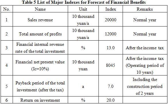 After the project reaches the production capacity, its annual sales revenue will be 200 million yuan, its profit will be 120 million yuan, its investment payback period will be 7.0 years (after the tax, including the construction period of 2 years) and its return on investment will be 20.0%.