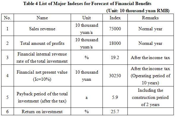 After the project reaches the production capacity, its annual sales revenue will be 750 million yuan, its profit will be 180 million yuan, its investment payback period will be 5.9 years (after the tax, including the construction period of 2 years) and its return on investment will be 25.7%.