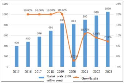 Figure 3 Scale and Growth Rate of China's Health and Wellness Tourism Market from 2015 to 2023