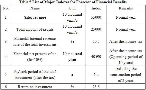 After the project reaches the production capacity, its annual sales revenue will be 550 million yuan, its profit will be 250 million yuan, its investment payback period will be 6.2 years (after the tax, including the construction period of 2 years) and its return on investment will be 23.6%.