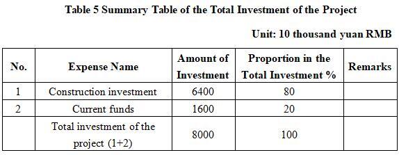 The total investment of the project is 80 million yuan, including the construction investment of 64 million yuan and current funds of 16 million yuan.