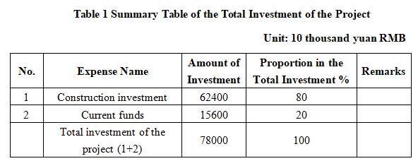 The total investment of the project is 780 million yuan, including the construction investment of 624 million yuan and current funds of 156 million yuan.