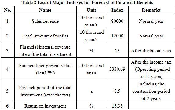 After the project reaches the production capacity, its annual sales revenue will be 800 million yuan, its profit will be 120 million yuan, its investment payback period will be 8.5 years (after the tax, including the construction period of 2 years) and its return on investment will be 15.38%.
