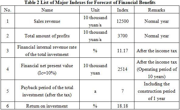 After the project reaches the production capacity, its annual sales revenue will be 125 million yuan, its profit will be 37 million yuan, its investment payback period will be 7 years (after the tax, including the construction period of 1 year) and its return on investment will be 18.18%.