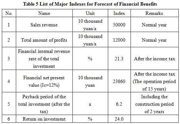 After the project reaches the production capacity, its annual sales income will be 500 million yuan, its profit will be 120 million yuan, its investment payback period will be 6.2 years (after the tax, including the construction period of 2 years) and its investment profit rate will be 24.0%.