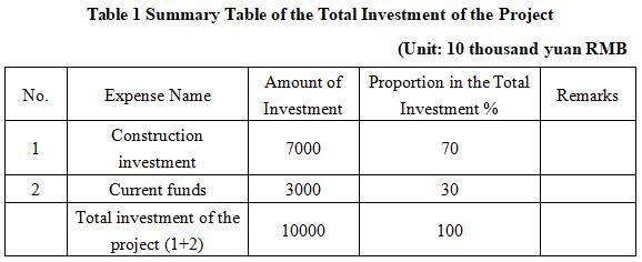 The total investment of this project is 100 million yuan, including the construction investment of 70 million yuan.