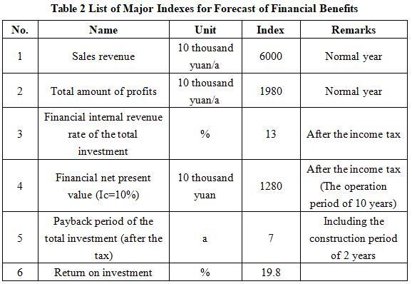 After the project reaches the production capacity, its annual sales income will be 60 million yuan, its profit will be 19.8 million yuan, its investment payback period will be 7 years (after the tax, including the construction period of 2 years) and its investment profit rate will be 19.8%.