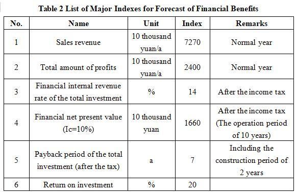 After the project reaches the production capacity, its annual sales income will be 72.7 million yuan, its profit will be 24 million yuan, its investment payback period will be 7 years (after the tax, including the construction period of 2 years) and its investment profit rate will be 20%.