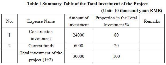 1.3 Total investment of the project and capital raising