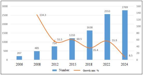 Figure 2 Survey on the Number and Growth Rates of Logistics Parks Nationwide from 2006 to 2024