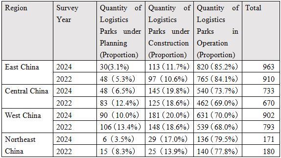 Table 4 Comparison Table of the Quantity and Construction Status of Logistics Parks in the Four Major Economic Regions