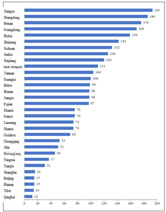Figure 5 Number of Logistics Parks in Each Province (Autonomous Region, Municipality Directly under the Central Government)