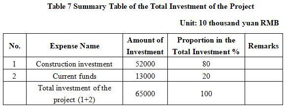 1.3.1 Total investment of the project