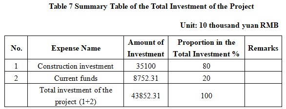 The total investment of the project is 438.5231 million yuan, including the construction investment of 351 million yuan and current funds of 87.5231 million yuan.