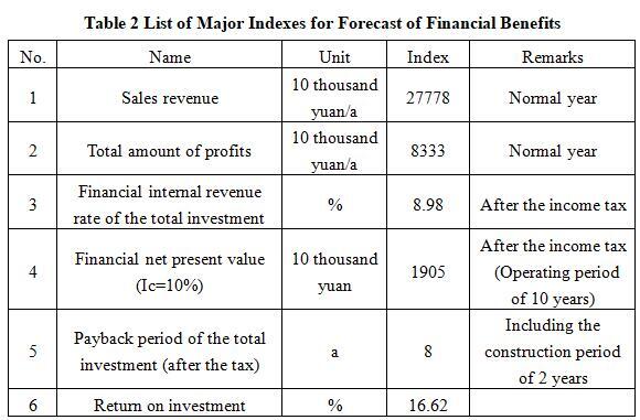 After the project reaches the production capacity, its annual sales revenue will be 277.78 million yuan, its profit will be 83.83 million yuan, its investment payback period will be 8 years (after the tax, including the construction period of 2 years) and its return on investment will be 16.62%.