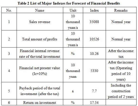 After the project reaches the production capacity, its annual sales revenue will be 350.88 million yuan, its profit will be 105.26 million yuan, its investment payback period will be 7.7 years (after the tax, including the construction period of 2 years) and its return on investment will be 17.54%.