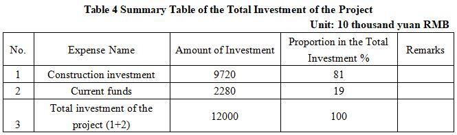 The total investment of the project is 120 million yuan, including the construction investment of 97.2 million yuan and working capital of 22.8 million yuan.