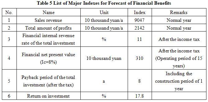 After the project reaches the production capacity, its annual sales income will be 90.47 million yuan, its profit will be 21.42 million yuan, its investment payback period will be 8 years (after the tax, including the construction period of 1 year) and its investment profit rate will be 17.8%.